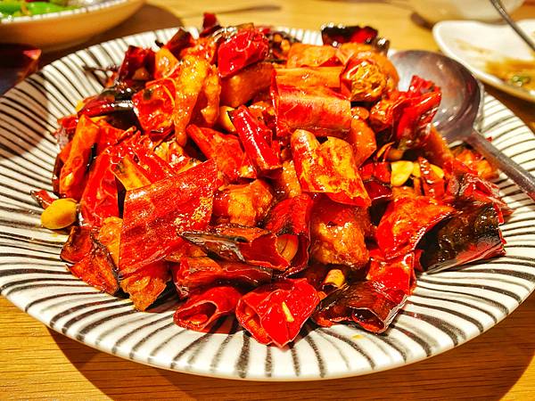 滿滿的花椒佈滿整道菜,裏頭充斥著雞丁和雞皮,雖然外表紅通通的,但雞肉表現卻不會辣,帶點麻感倒是很下飯😂