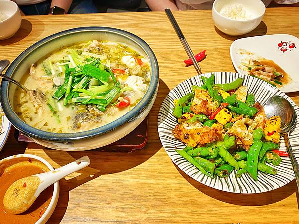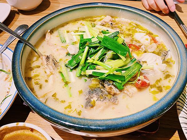 個人很喜歡這道菜,鱸魚很鮮嫩,但魚肉帶皮,外型也不會隨意鬆散,倒是入口牙齒輕咬就化開,湯底色濁入口卻溫純,充滿了酸與痲😂