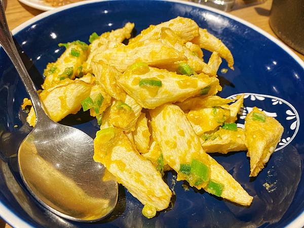 每塊筊白筍外層裹著金黃的鹹蛋,鹹香有韻,筍塊水分很多,不失清甜️